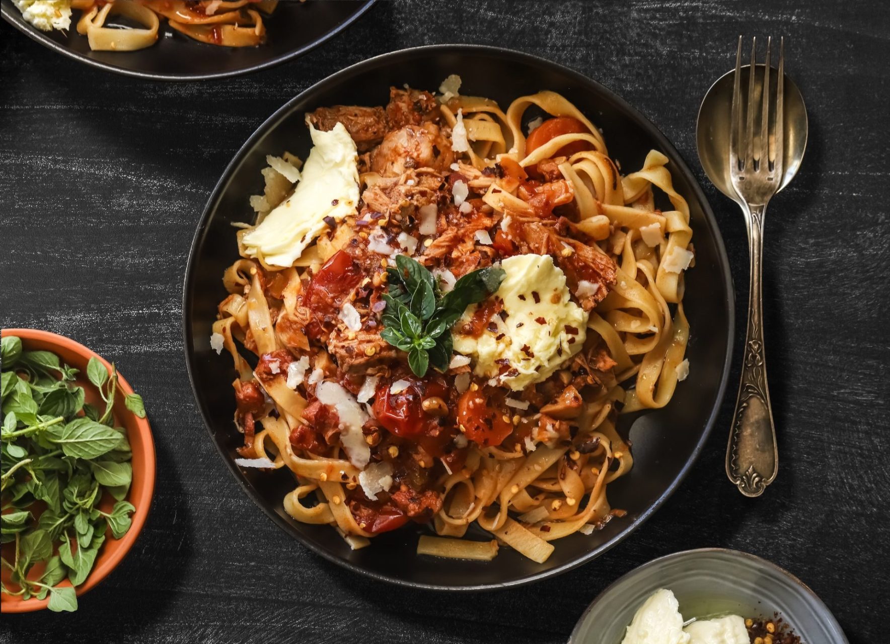 Once it reaches a simmer, gently pour the mixture over the seared pork in the casserole dish. Cover and place on the lowest shelf in the oven. Braise the pork for about 2 hours or until fork-tender. Remove the pot from the oven and finely shred the pork with two forks. Taste and adjust the seasoning if needed.